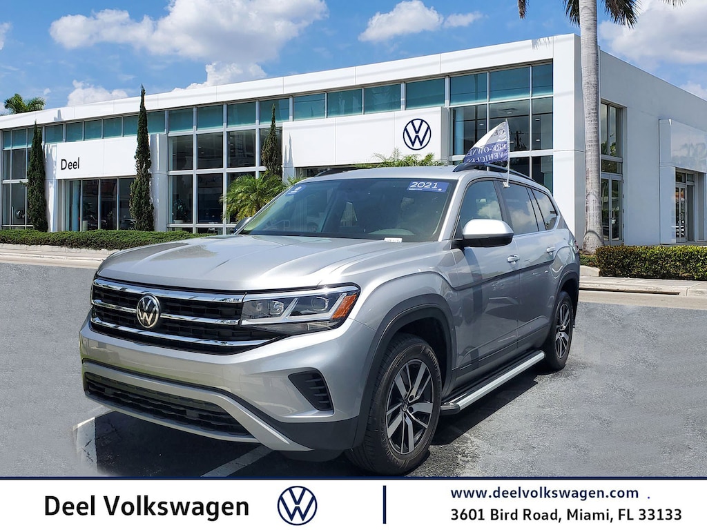 At Deel Volkswagen, we believe that buying a car should be as enjoyable as driving one. From the moment you walk through our doors, youâll be greeted by a friendly, knowledgeable staff ready to make your experience seamless and stress-free. Enjoy a cup of freshly brewed coffee while you explore our newly designed showroom, featuring an excellent selection of new and pre-owned vehicles. And if you donât see exactly what youâre looking for, we have access to additional inventory beyond our lot, ensuring youâll find the perfect Volkswagen to fit your lifestyle. Come see why so many drivers choose to buy their next vehicle at Deel Volkswagen â" where comfort, convenience, and customer care come standard. Introducing the 2021 Volkswagen Atlas 2.0T SE 4Motion, a remarkable blend of sophistication and practicality. This midsize SUV is designed to provide ample space, comfort, and advanced technology, making it the perfect choice for families and adventurers alike. The Atlas is powered by a robust 2.0-liter turbocharged engine, delivering a responsive driving experience while maintaining impressive fuel efficiency. With the innovative 4Motion all-wheel-drive system, you'll enjoy enhanced stability and traction, whether navigating city streets or exploring off the beaten path. Inside, the Atlas SE offers a spacious and thoughtfully designed cabin, accommodating up to seven passengers with ease. High-quality materials and modern finishes create a welcoming atmosphere, complemented by advanced features like a touchscreen infotainment system, Apple CarPlay, and Android Auto for seamless connectivity. Safety is prioritized with state-of-the-art driver assistance technologies that give you peace of mind on every journey. With its bold exterior styling and versatile interior, the 2021 Volkswagen Atlas 2.0T SE 4Motion stands out in its class and caters to all your lifestyle needs. Experience the perfect combination of utility and luxury in this exceptional SUV. Don't miss your chance to own this limited availability model! Ready to experience the Deel difference? Visit Deel Volkswagen today to test drive your favorite model, enjoy a cup of coffee, and let our friendly team help you find the perfect vehicle. Stop by, call us, or schedule your appointment online â" your next Volkswagen is waiting for you at Deel!